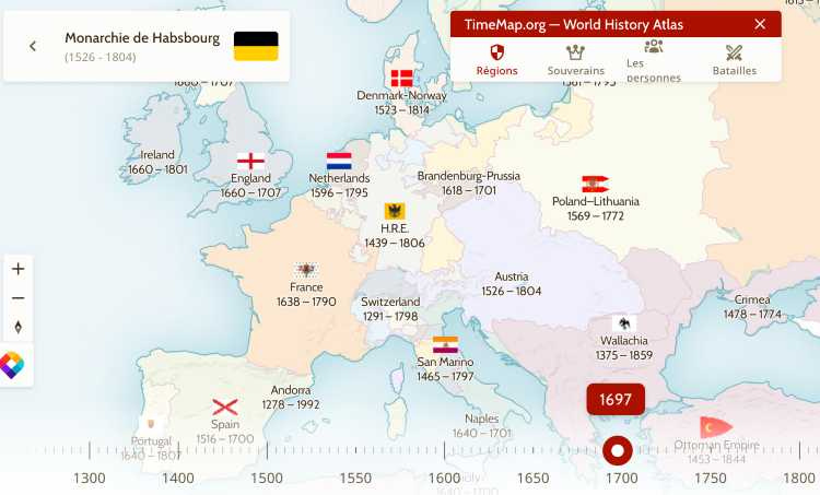 Parcourez les lieux historiques et recherchez de vieilles cartes avec la chronologie de TimeMap. Faites glisser le curseur sur la timeline et vous découvrirez le mouvement des frontières, la succession des souverains, des célébrités et… des batailles célèbres. Monde mouvant.